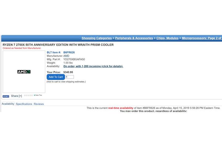Bazı perakende kanallarında ortaya çıkan bilgilere göre bu işlemci 50. Yıl Özel Ryzen 7 2700X adını taşıyor. YD270XBGAFA50. model numarasına sahip olan işlemcinin orijinal işlemciden herhangi bir farkı yok.