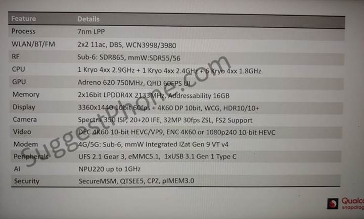 Adreno 620 grafik birimi 750MHz hızında çalışırken bağımsız NPU220 yapay zekâ hızlandırıcısının da 1GHz seviyesine çıkabildiği dikkat çekiyor. Ayrıca 7nm sürecinde tasarlanan ilk üst seviye yonga seti olacak Snapdragon 735 segmentinde fark yaratacak.