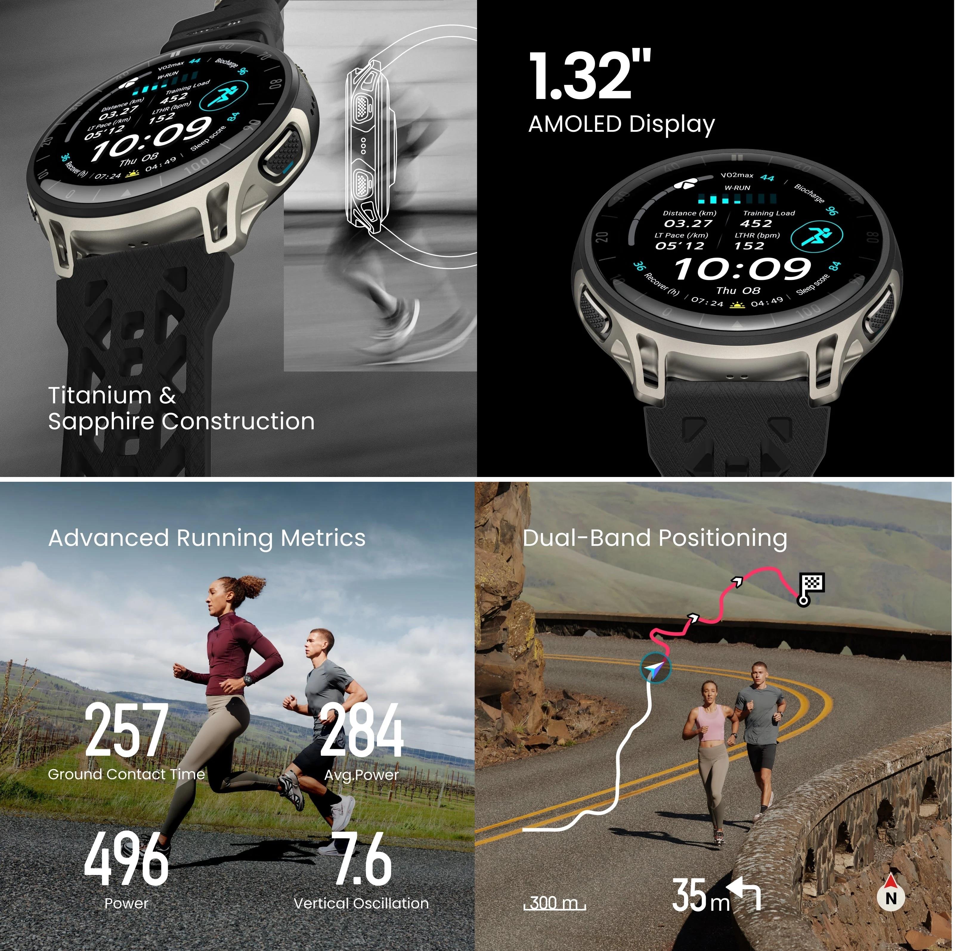 Bluetooth 5.2 ve Wi-Fi 2.4GHz bağlantıları sunan saat sesli görüşmeleri destekliyor. Zepp Coach uygulaması 3000Km ve maraton arasındaki tüm mesafeler için uyarlanabilir planlar hazırlarken hız, laktat bükülme noktası, koşu gücü, ayağın yere değdiği zamanlar, yürüyüş, tahmini bitiş zamanları gibi değerleri takip edebiliyor. Çift bant GPS yongası ise 6 farklı uydu sistemine bağlanabiliyor.