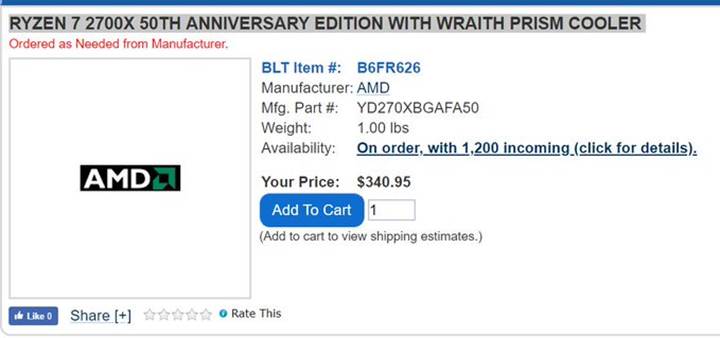 Buna karşın daha yüksek saat hızları bekleyebiliriz. İlginçtir normal Ryzen 7 2700X 380 dolar civarından satılırken geçtiğimiz günlerde hata sonucu siparişe açılan 50. yıl modeli 340$’dan listelenmişti. Son olarak sınırlı sayıda üretilmesi beklenen ikilinin 29 Nisan’da tanıtılması planlanıyor.