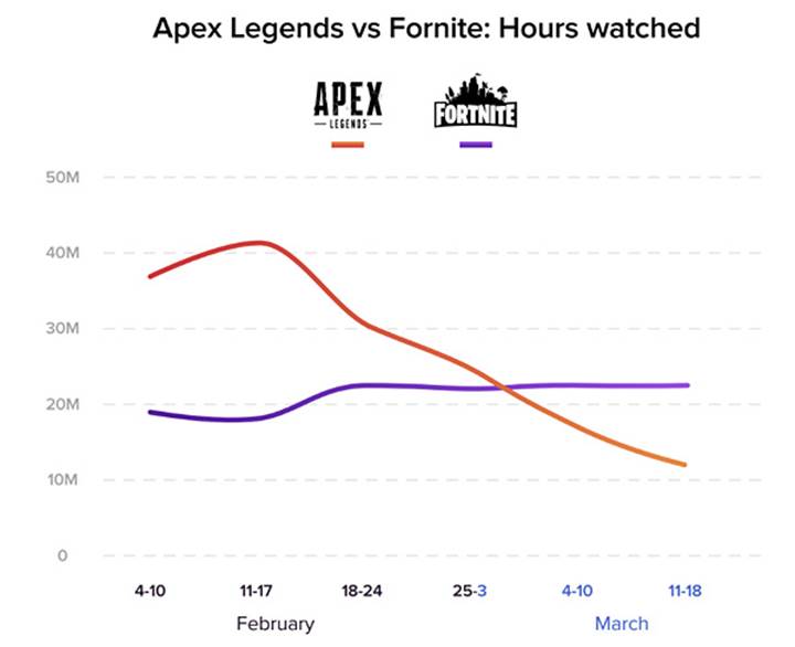 Battle royale türüne fırtına gibi giriş yapan ve ilk ayında 50 milyon satış rakamına ulaşan Apex Legends bu ivmeyi koruyamamış gibi görünüyor. Araştırmalar internet ortamında oyuna ilginin düşmeye başladığını gösteriyor.