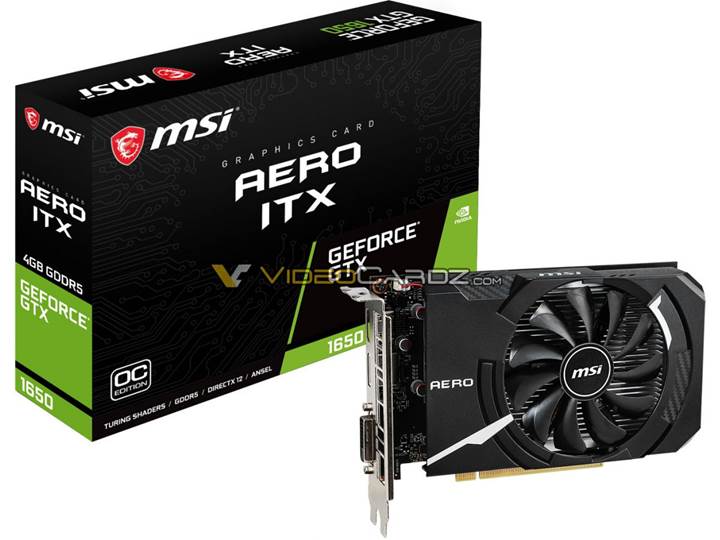 MSI GTX 1650 Aero ITX OC tek fanlı kompakt bir seçenek olmuş. Daha önce gördüğümüz Aero ITX modelleriyle benzer tasarımdaki kart ufak boyutuna rağmen fabrika çıkışı hız aşırtmayla gelirken DVI-D portu dikkat çekiyor.