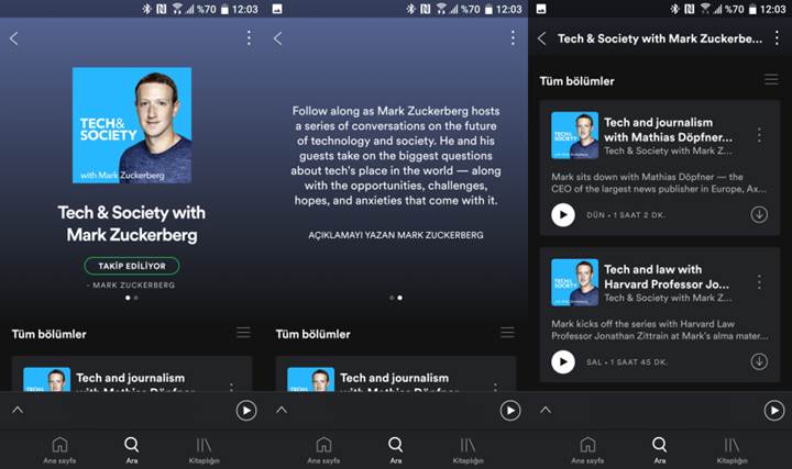 Podcast serisinin şuan iki bölümü yayında bulunuyor. Bu bölümlerden ikisinde de röportajlar yapan Zuckerberg, konular hakkındaki fikirlerini açığa kavuşturuyor.
