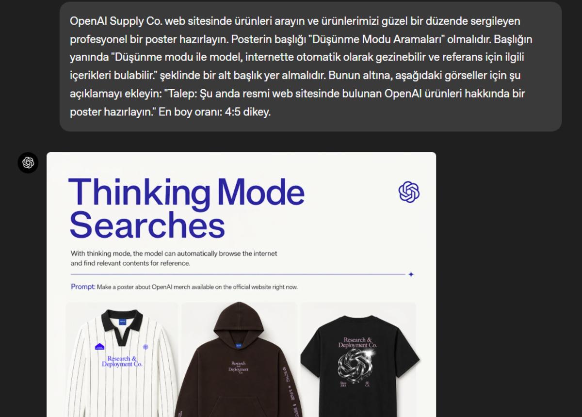 “Düşünen model” modu açıldığında işler iyice değişiyor. Model, sizin yerinize araştırma yapabiliyor, içerikleri analiz edebiliyor ve görseli oluşturmadan önce planlama yapıyor. Hatta tek komutla 8 farklı görsel üretip bunları birbiriyle tutarlı hâlde sunabiliyor. Özellikle seri içerik üretimi için inanılmaz bir kolaylık.