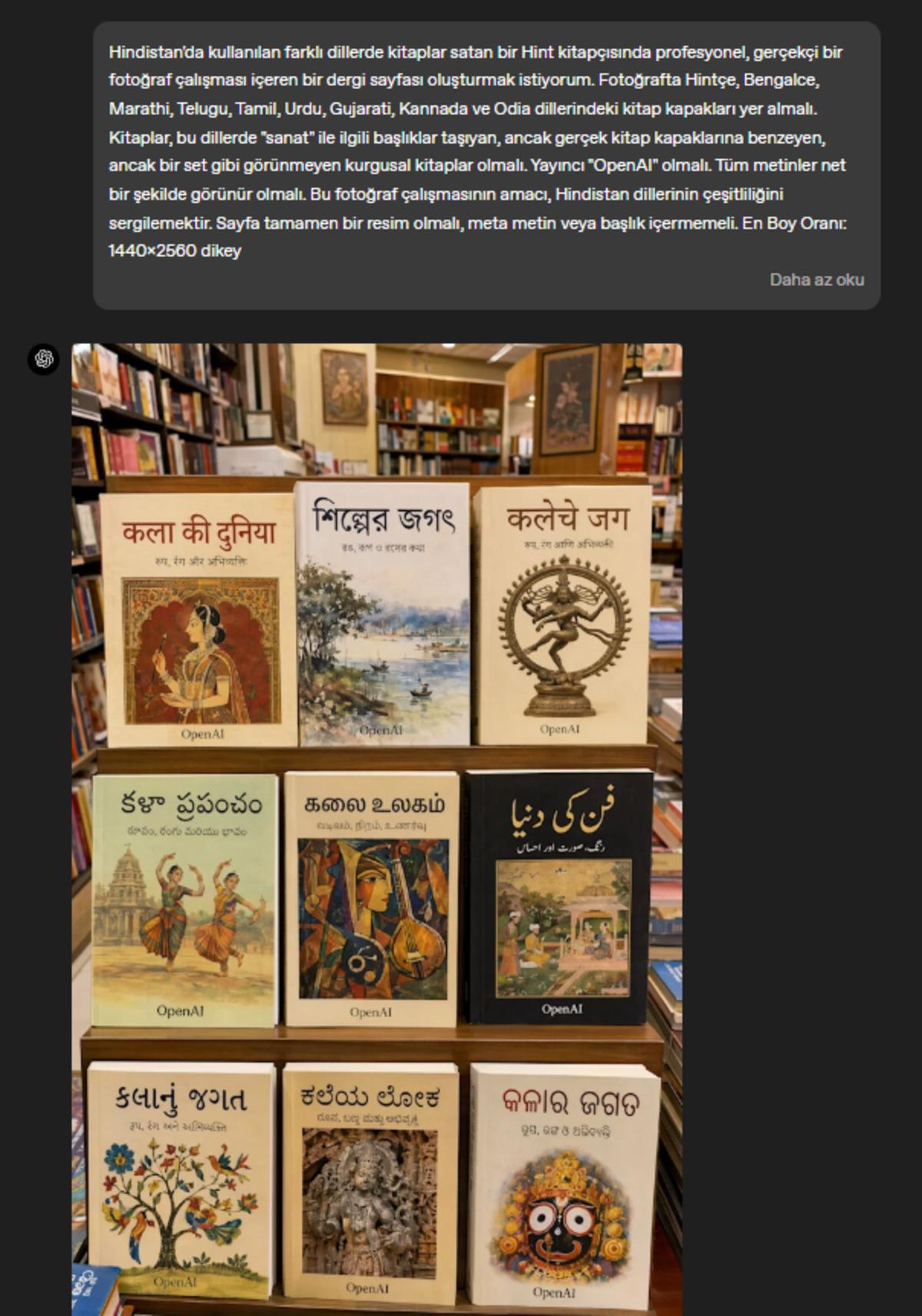 Yeni modelin en dikkat çeken gelişmelerinden biri de dil tarafında. Artık sadece İngilizce değil; Japonca, Korece, Çince gibi dillerde de oldukça başarılı. Üstelik bu sadece çeviri değil. Görselin içindeki metinler gerçekten doğal görünüyor ve tasarımla uyumlu oluyor. Poster, afiş ya da bilgi grafiği hazırlarken metinler artık “yapay” durmuyor.