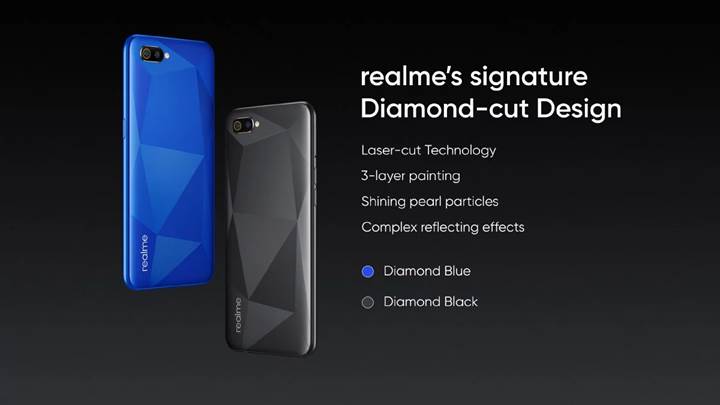 Realme C2, Helio P22 yonga seti temelinde şekilleniyor. 12 nm üretim süreci sonucu ortaya çıkan bu yonga setine tercihinize göre 2 GB RAM + 16 GB depolama veya 3 GB RAM ve 32 GB depolama eşlik ediyor. 6.1 inç, HD çözünürlüğündeki ekrana su damlası çentik tasarımı hakim. Arka tarafa geçtiğimizde ise firma tarafından “elmas kesim” olarak adlandırılan polygonal kapak görülüyor. Resimlerden de fark edebileceğiniz üzere maalesef cihazın parmak izi sensörü bulunmuyor.