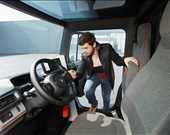 Yukarıda da belirttiğim gibi Renault EZ-FLEX işlevsellik üzerine tasarlanmış bir araç. Bu nedenle kabin kısmı biraz küçük fakat sürücünün ihtiyaçlarını karşılayacak şekilde tasarlanmış. Aracın geniş açılan kapıları sayesinde kabine ulaşmak oldukça kolay. Sade bir tasarıma sahip kokpitte yatay bir bilgi-eğlence ekranı bulunuyor. Ayrıca sürücünün yan tarafındaki koltuğun da katlanabilir olduğu göze çarpıyor. Aracın kargo bölümünün farklı konfigürasyonları destekleyecek şekilde tasarlandığı da verilen bilgiler arasında.